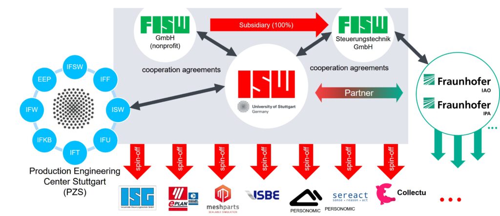 FISW Steuerungstechnik GmbH was founded on 25.7.1997 as a wholly owned subsidiary of FISW Forschungs- und Ingenieurgesellschaft für Steuerungstechnik GmbH, Stuttgart. Since 1.8.1997, FISW GmbH has exclusively carried out research projects, training etc. within the scope of the legal possibilities for a non-profit GmbH. Since then, FISW Steuerungstechnik GmbH has been responsible for contract research within the framework of industrial orders and is managed as an independent unit.